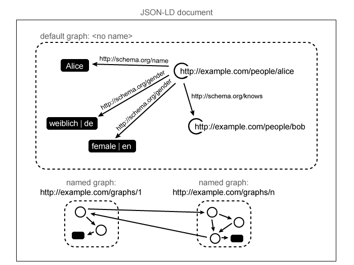 Summarized these differences mean that JSON-LD is capable of serializing any RDF graph or dataset and most, but not all, JSON-LD documents can be transformed to RDF. A complete description of the algorithms to convert from RDF to JSON-LD and from JSON-LD to RDF is included in the JSON-LD Algorithms and API specification [JSON-LD-API].